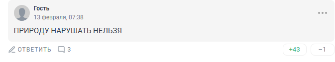 «А что есть нарушение? Процессы, приводящие к изменению климата и окружающей среды, постоянны. И без человека. Причем они скоротечны даже в рамках измерения времени человеком. Буквально век-два — и меняется многое почти до неузнаваемости. Всё, что мы делаем, либо нарушает, либо сохраняет именно наш мир. Мир людей. Но планете и природе в целом плевать. Она изменится, уничтожит нас, но сама-то будет существовать. В другом виде и форме. Но будет. Планета не превратится в ничто», — рассуждает читатель.