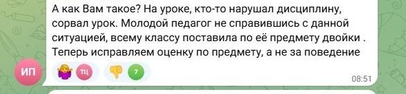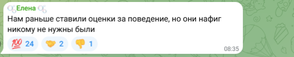 Есть и мнение, что оценка дисциплины может стать инструментом давления на педагогов и учеников. «Они и так есть. Поднял ручку с пола — учитель по русскому 2 ставит. Повернул голову — та же история», — приводит пример пользователь.