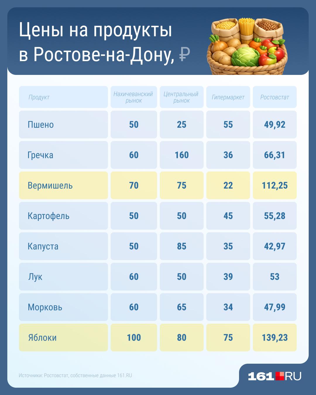 Цены сравнивали на Нахичеванском и Центральном рынках, а также в одном из крупных сетевых гипермаркетов города.