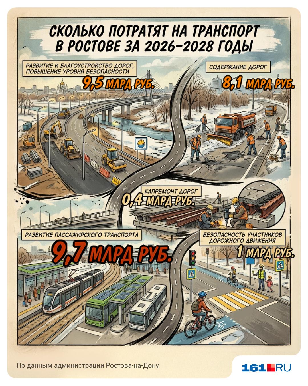 - В 2026 году: 1,7 млрд рублей — на развитие пассажирского транспорта и около 8 млрд — на капремонт и обслуживание дорог.