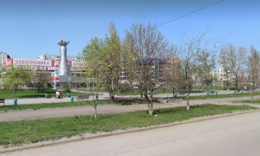 В районе Северный видна серебристая кегля — это боулинг «Полярная станция» под универсамом «Северный». Универсам позже снесли, построив две высотки, а справа появился торговый центр «Парк».