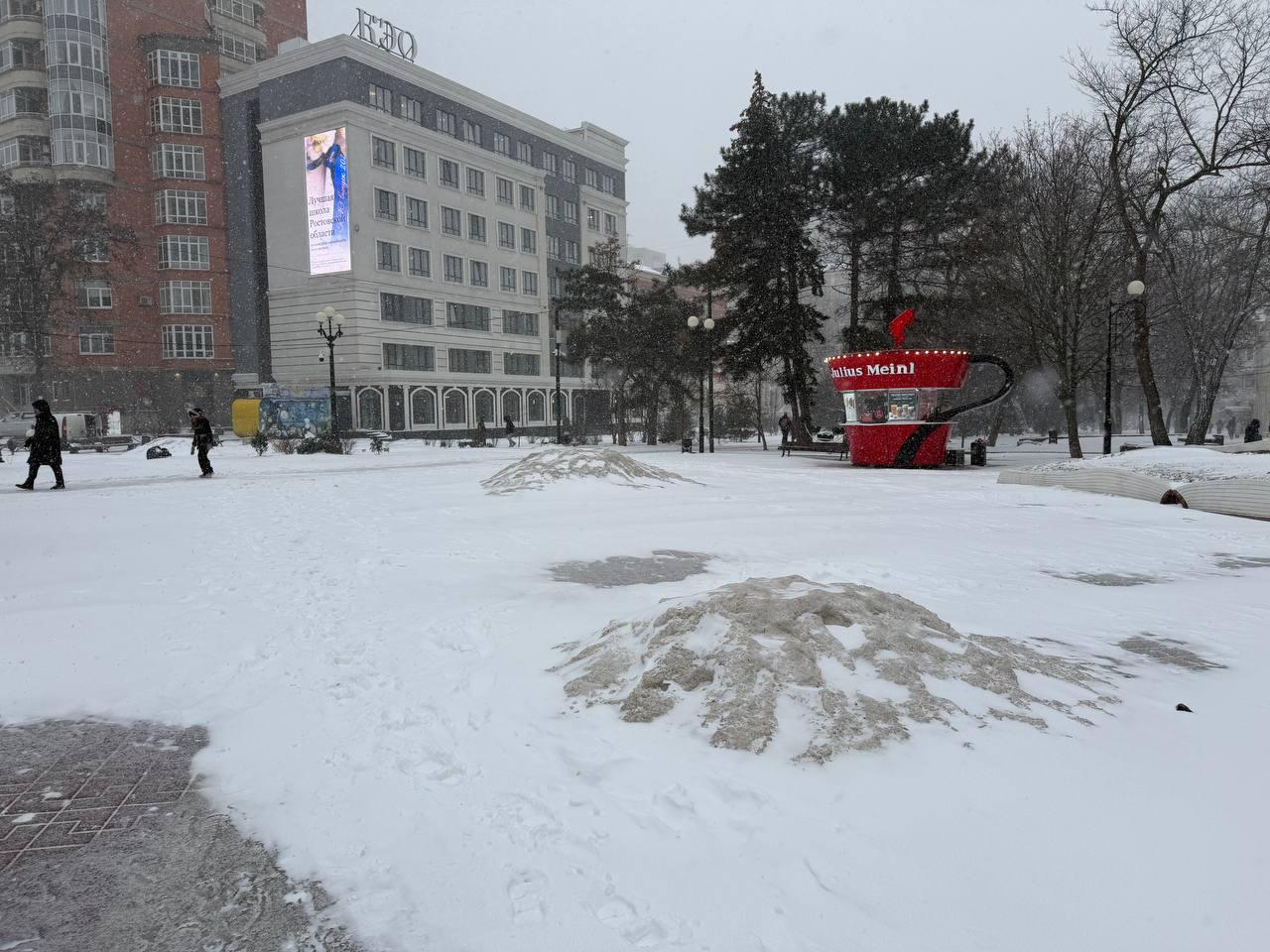 Снегопад основательно засыпал улицы Ростова.