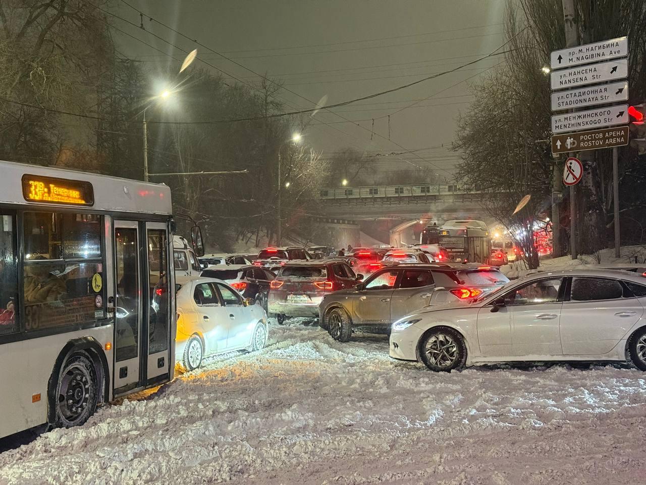 Интенсивные снежные осадки, обрушившиеся на Ростов 2 февраля, практически парализовали движение по городским магистралям.