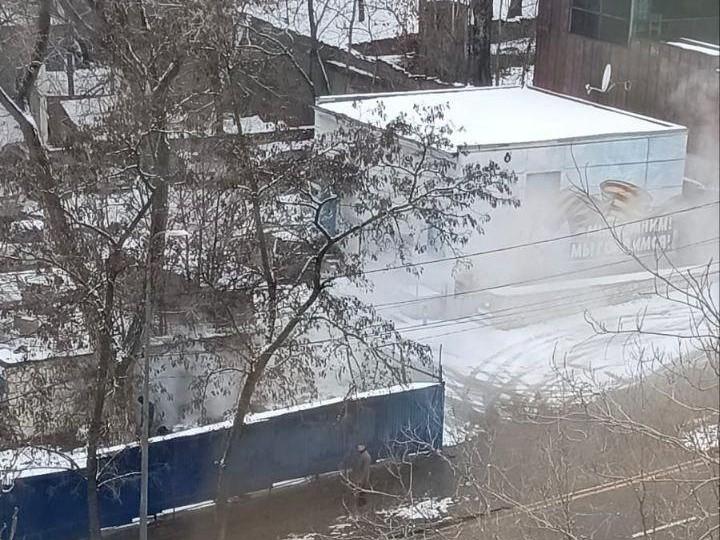 Момент разведения костра на участке будущего бизнес-центра.