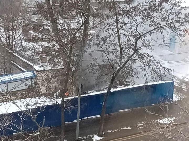 Неизвестные лица разводят костер на территории строительной площадки.
