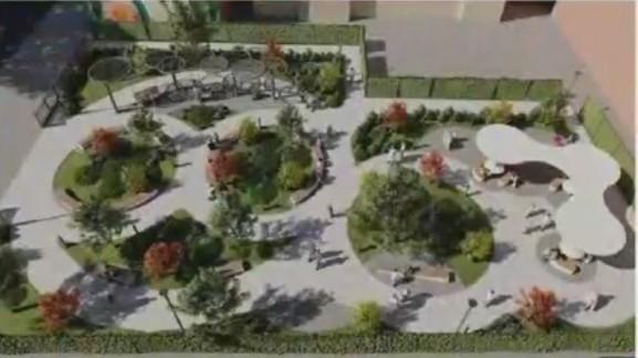 Визуализация сквера «Кленовый дворик», который построят на месте снесенного здания.