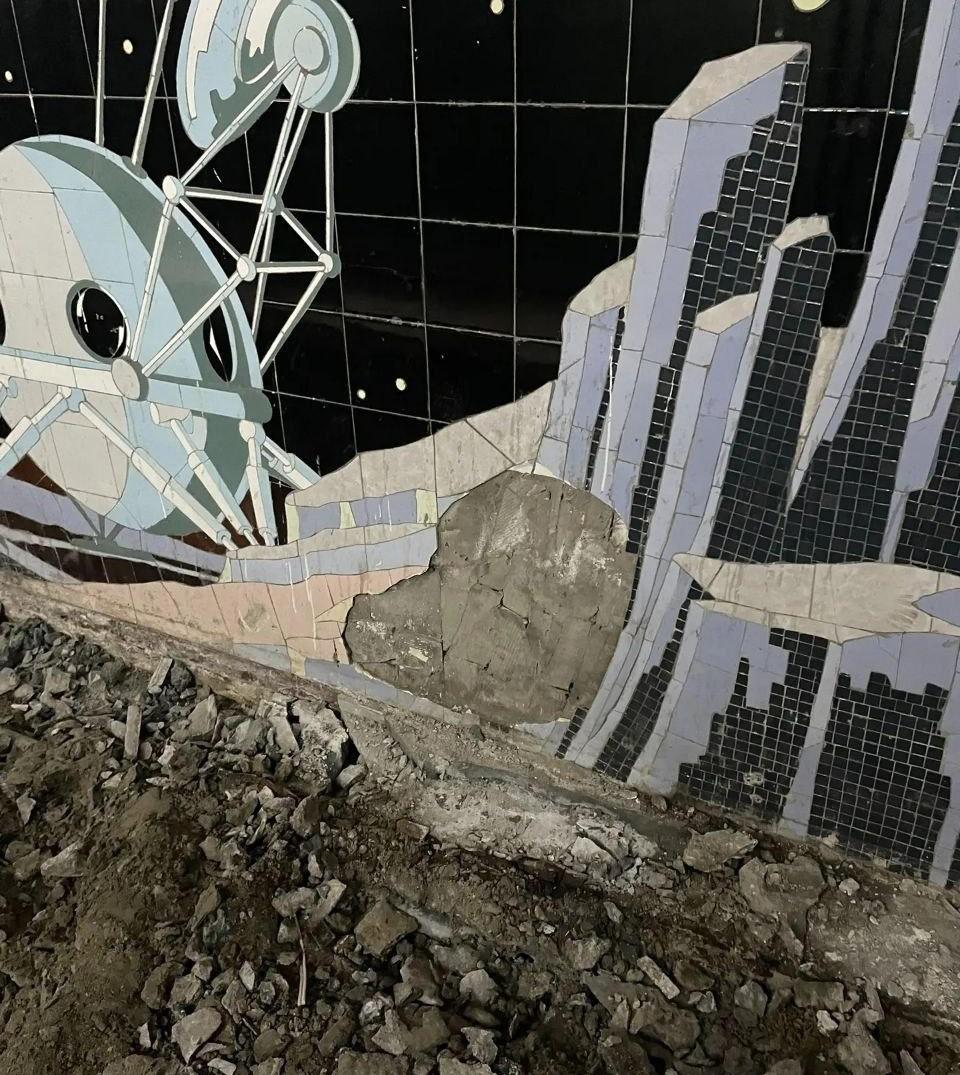 Часть мозаичного панно, являющегося объектом культурного наследия, обрушилась в ходе капитального ремонта.