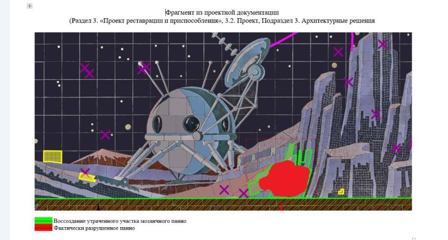 «Перед разработкой проектной документации на реставрацию подземного пешеходного перехода был проведен анализ состояния мозаики и зафиксированы все поврежденные участки, требующие особого внимания. Восстановление отсутствующей части мозаичного панно, о которой говорится в публикациях, включено в проектную документацию. Документ получил положительное заключение экспертизы и Комитета по охране культурного наследия Ростовской области», — сообщил директор МКУ ДИСОТИ Сергей Зубанов.