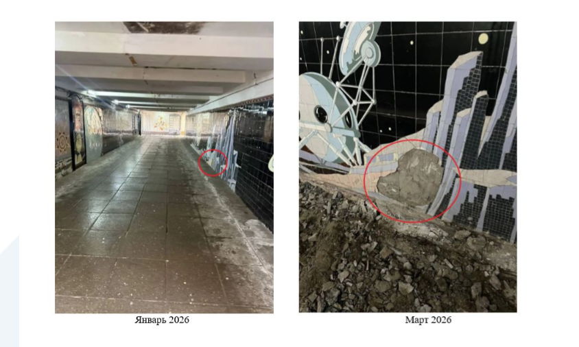 Согласно пояснениям властей, обвал произошёл до 10 апреля 2025 года, когда общественникам показали проект и фотографии разрушенных участков. В июне в самом переходе состоялось выездное совещание, на котором обсудили объекты, подлежащие реконструкции.
