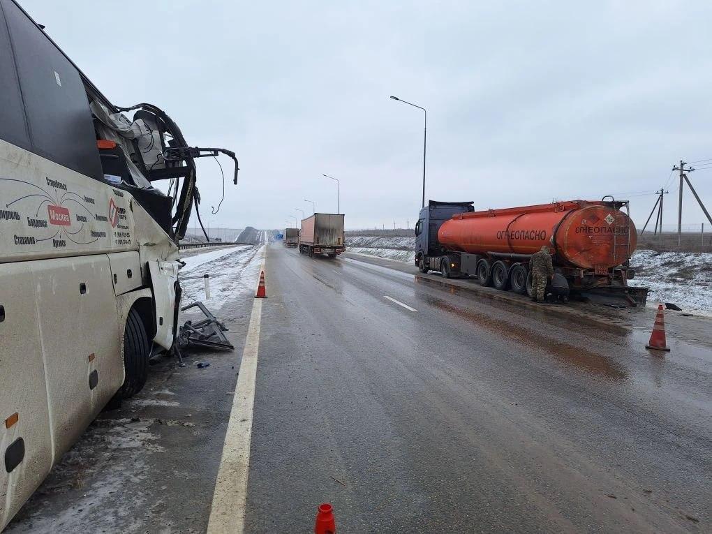 Серьёзное дорожно-транспортное происшествие с участием пассажирского автобуса и бензовоза произошло на федеральной трассе М-4 «Дон» в Ростовской области.