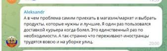 Другие подчеркнули удобство сервиса: «Можно и своими если они ходят, но есть люди которые не могут сходить и таких очень много. Доставка — это очень удобно».