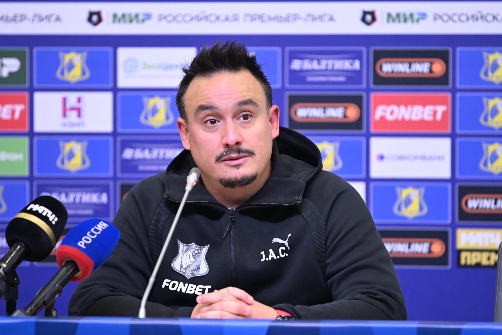 На вопрос, кроется ли проблема с реализацией моментов в разнице классе игроков, наставник «Ростова» ответил отрицательно. В качестве примера он привёл матч «Сочи» — «Краснодар», где у одного из лучших бомбардиров лиги, Кордобы, было несколько отличных шансов, но он не смог отличиться.