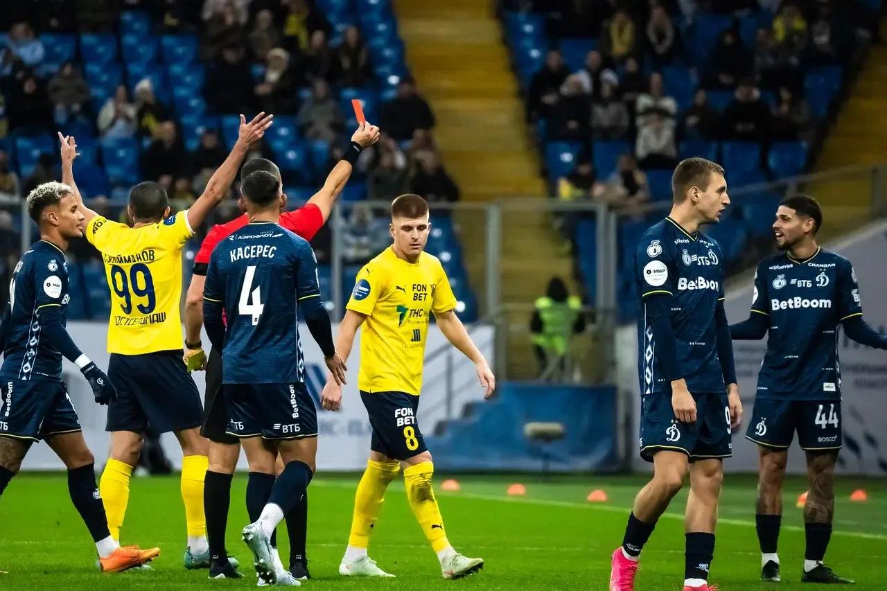 В первой половине игры главный арбитр Ян Бобровский показал две красные карточки. На 17-й минуте поле покинул защитник «Ростова» Виктор Мелехин, а на 39-й — сам Рубенс.
