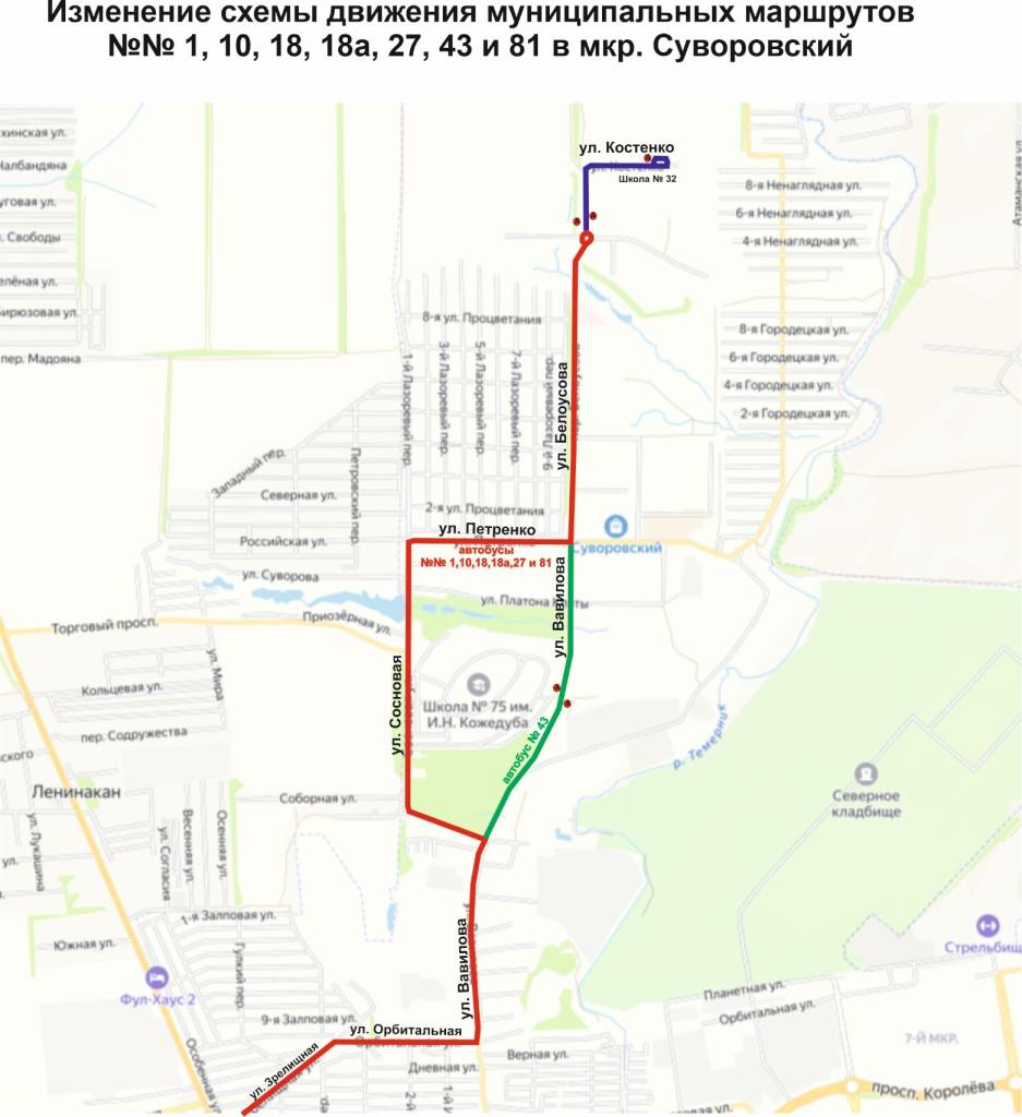 В Суворовском микрорайоне коррективы связаны с обустройством новой отстойно-разворотной площадки и остановочных пунктов на улицах Костенко, Белоусова и Вавилова.