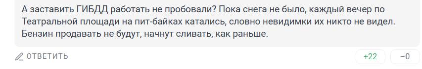 «Я так понимаю, после принятия этого закона автозаправкам придется внедрить новое ПО для сканирования паспортов и внесения сведений в какой-нибудь очередной реестр, ведение которого стоит денег. Это скажется на стоимости топлива — стоимость повысится. Так? В итоге это никак не уменьшит количество малолеток, гоняющих на мопедах и прочих СИМах на электротяге, но создаст очередные неудобства автомобилистам».