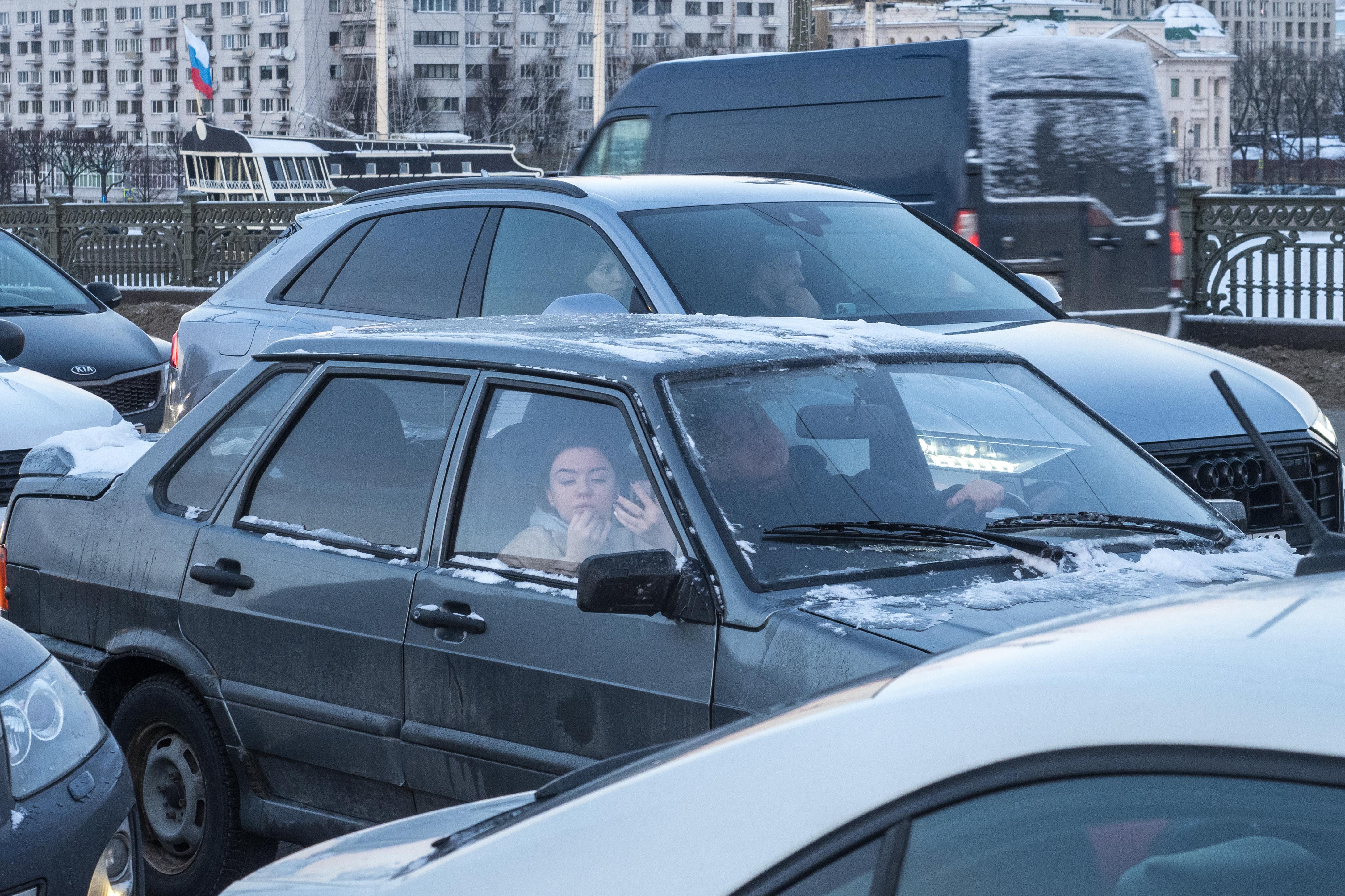 Суммарная протяженность пробки составляет свыше трех километров.