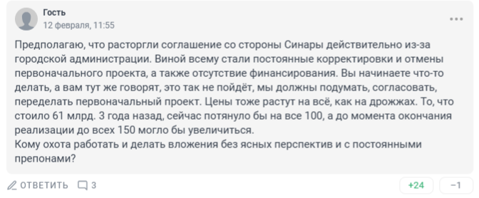 - «Афера века. Продали тысячи квартир со словами «Тут будет скоростной трамвай, почти метро». Куча денег ушла в землю. Много лет назад пути на Стачки разобрали. Не то что построить метро, новые рельсы проложить теперь не могут в центр, непосильная задача».