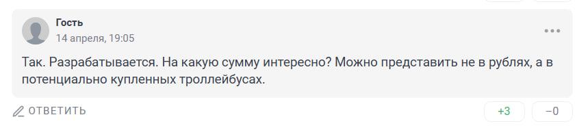 «Автобусная «мафия» победила в очередной раз. Зачем им конкуренция с таким пассажиропотоком в городе? 11 предприятий города отодвинули электротранспорт в бездну. Красиво и умно, конечно. Респект нашим чиновникам города и области».