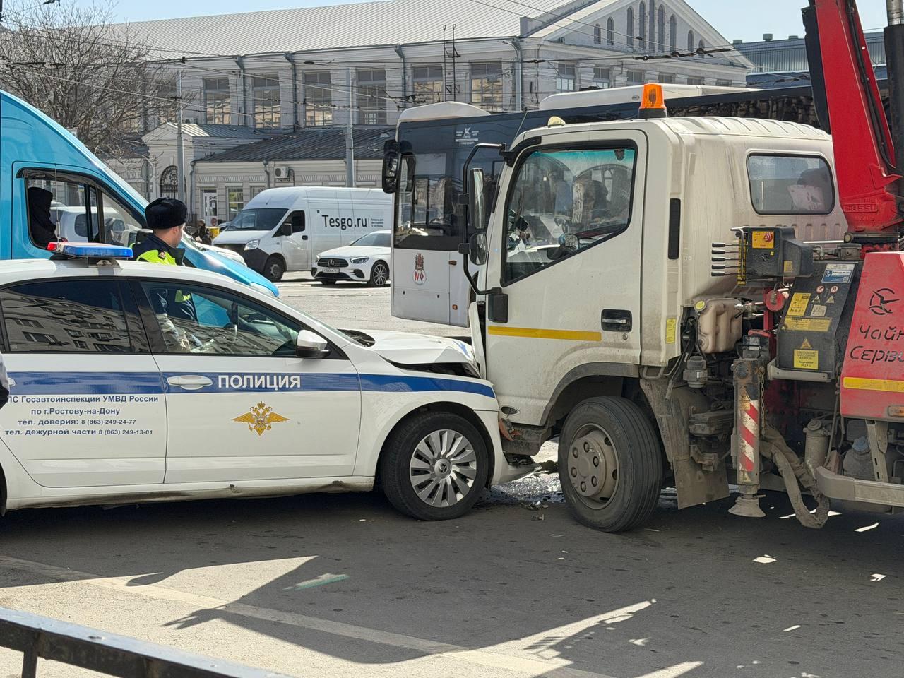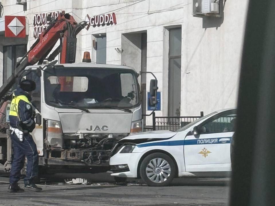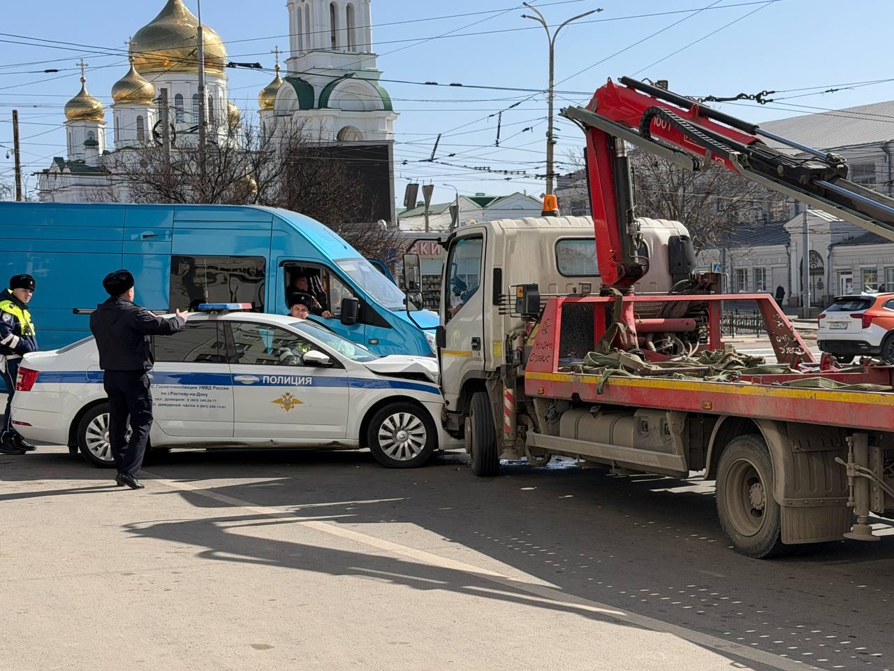 В результате столкновения эвакуатора и патрульной машины ДПС в центре Ростова никто не пострадал. Виновным в инциденте признан водитель эвакуатора.