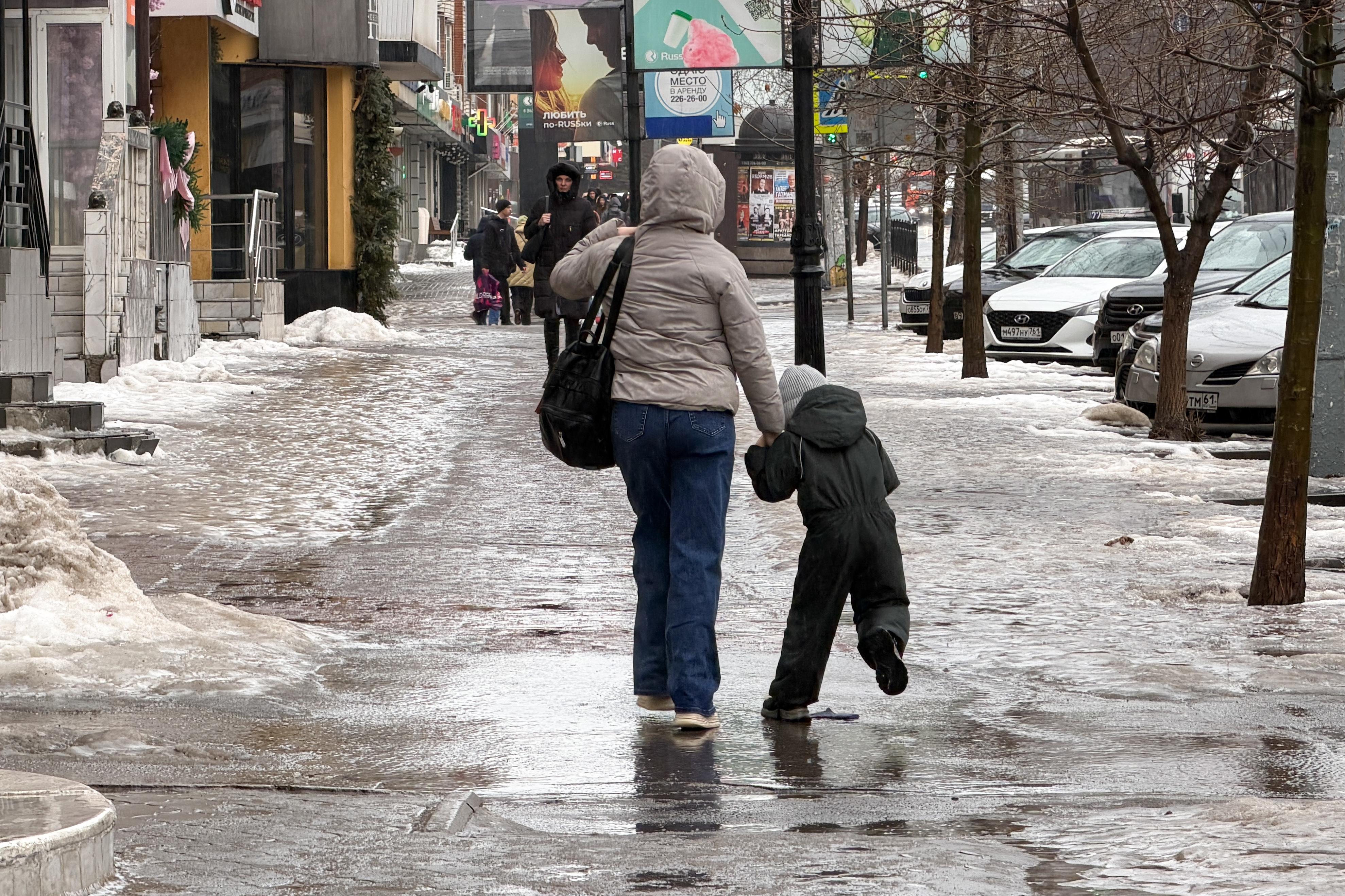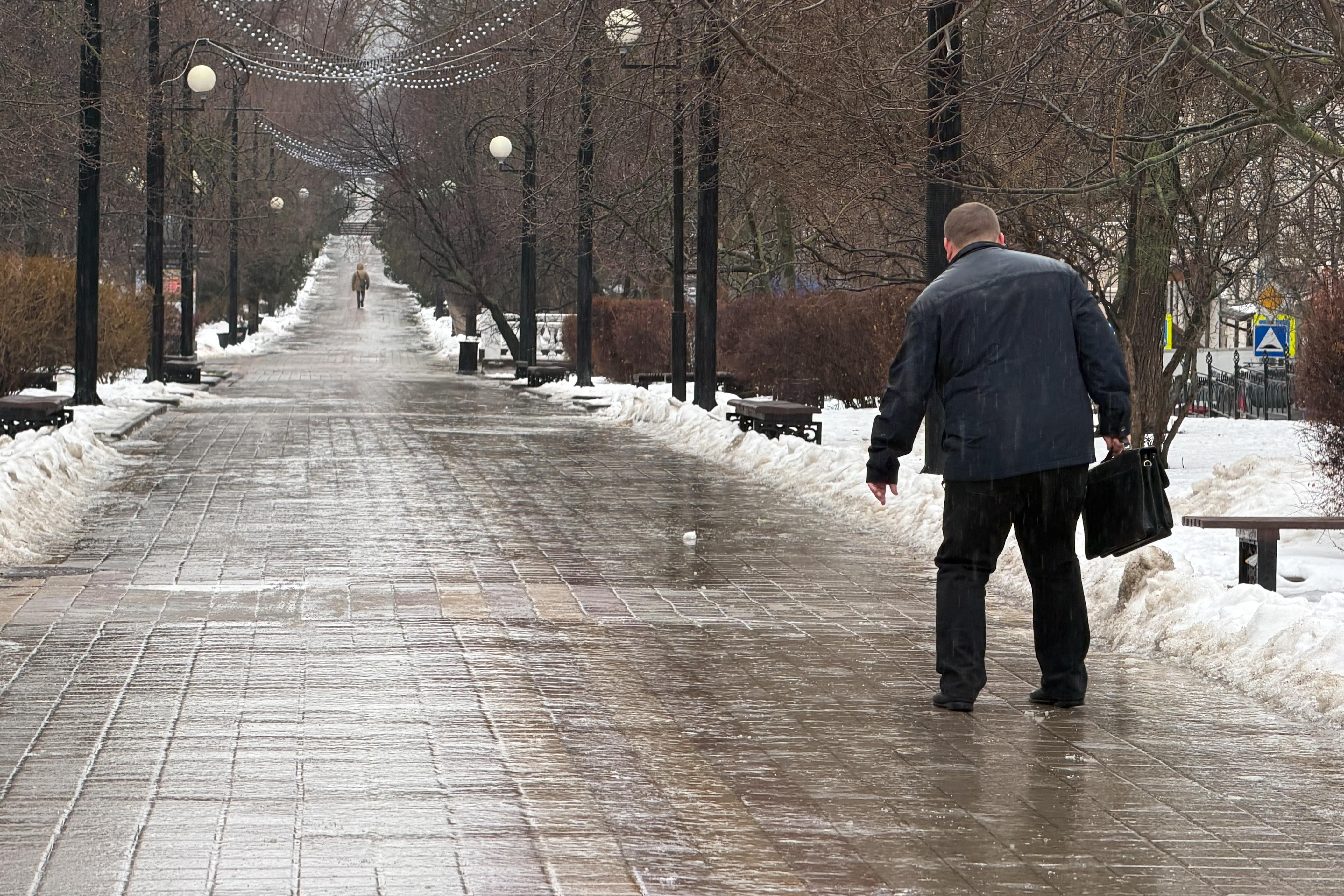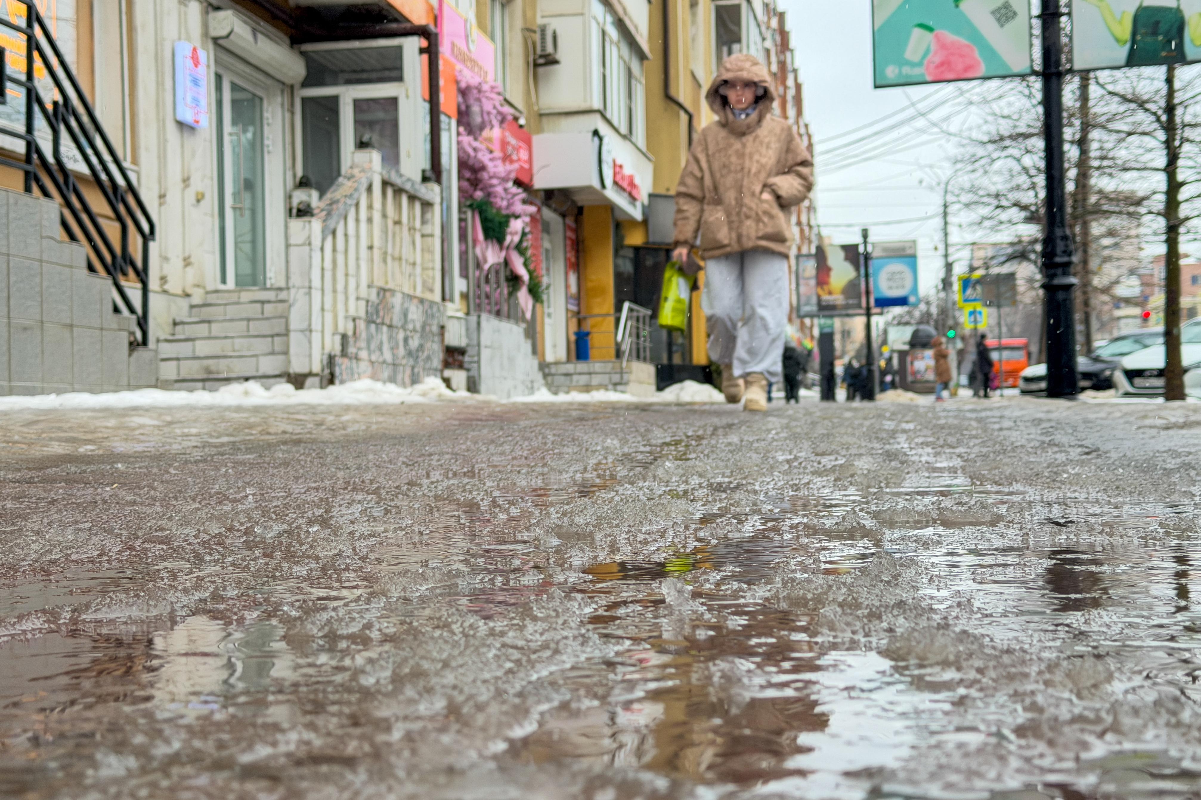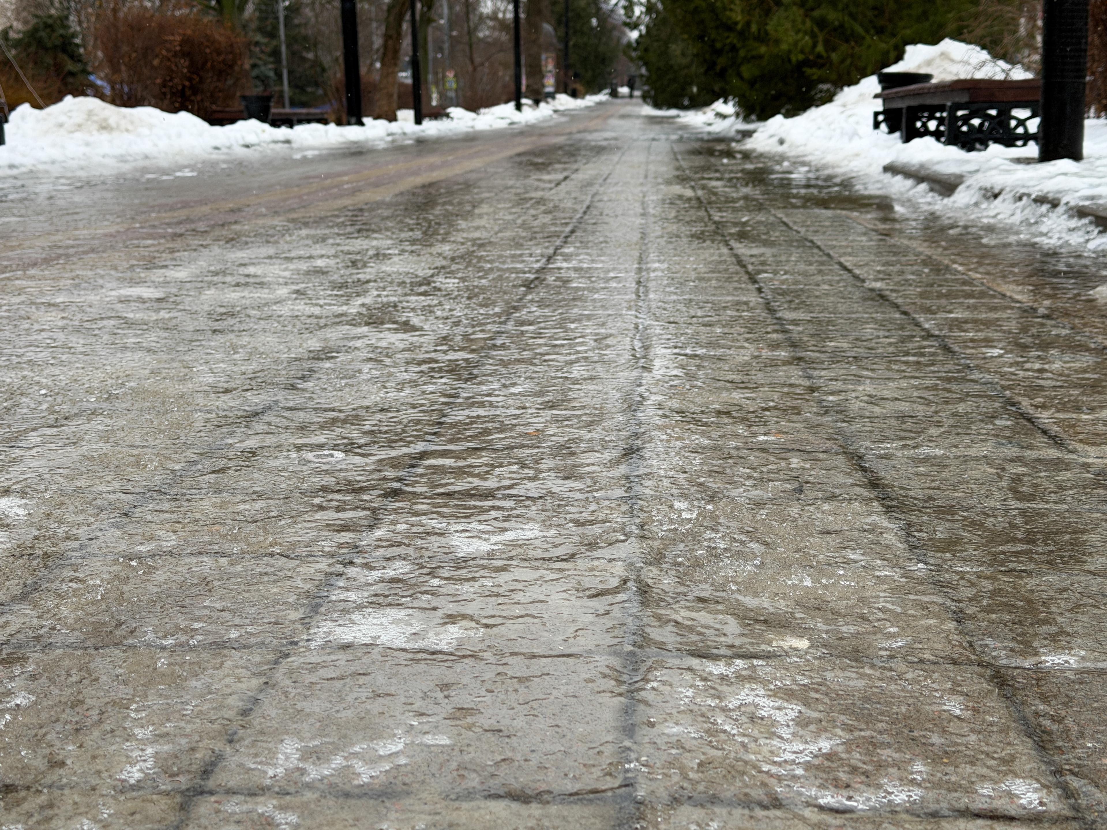 Потепление в Ростове привело к гололеду из-за таяния неубранного снега.