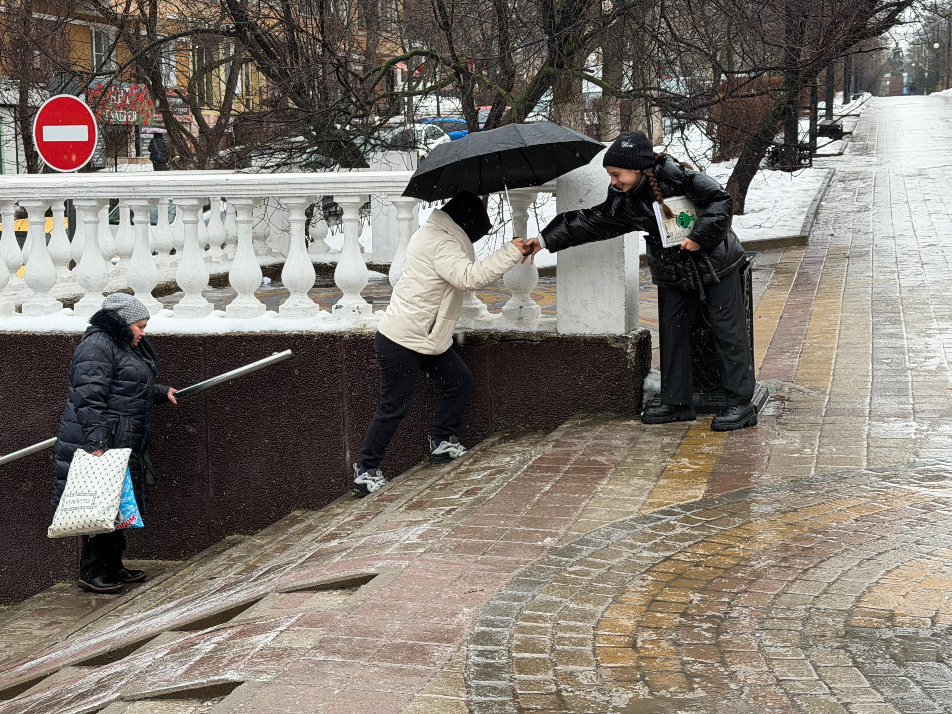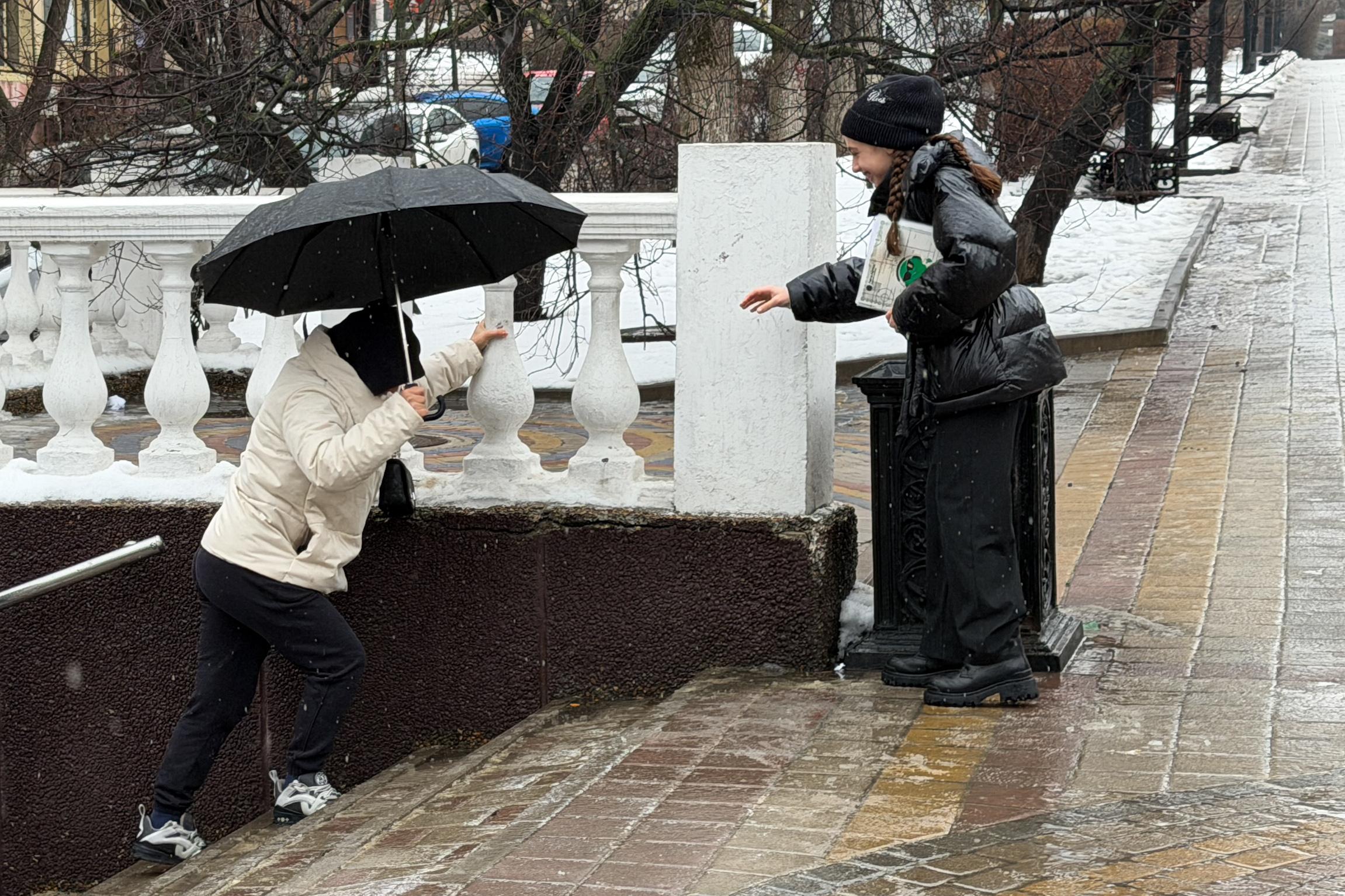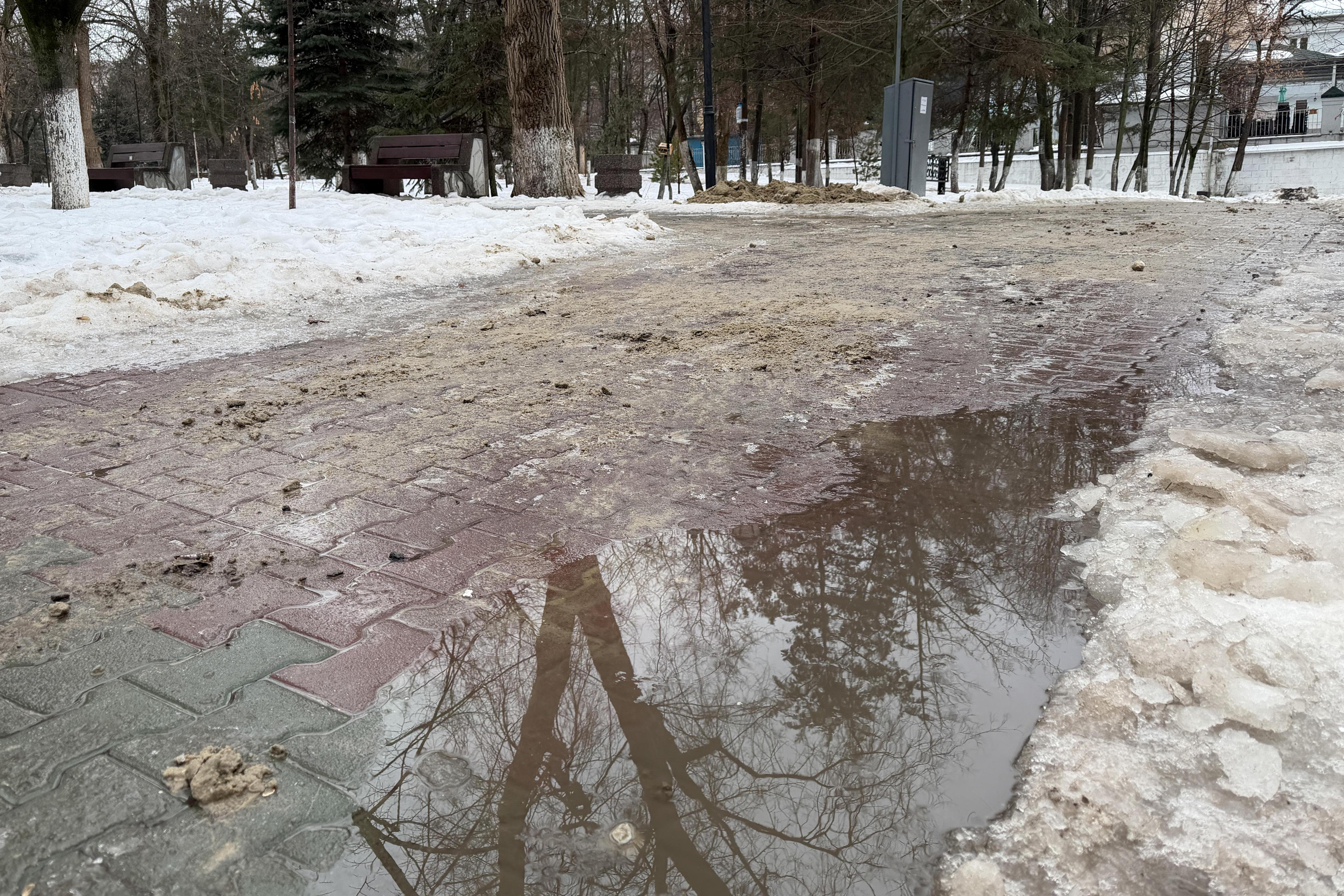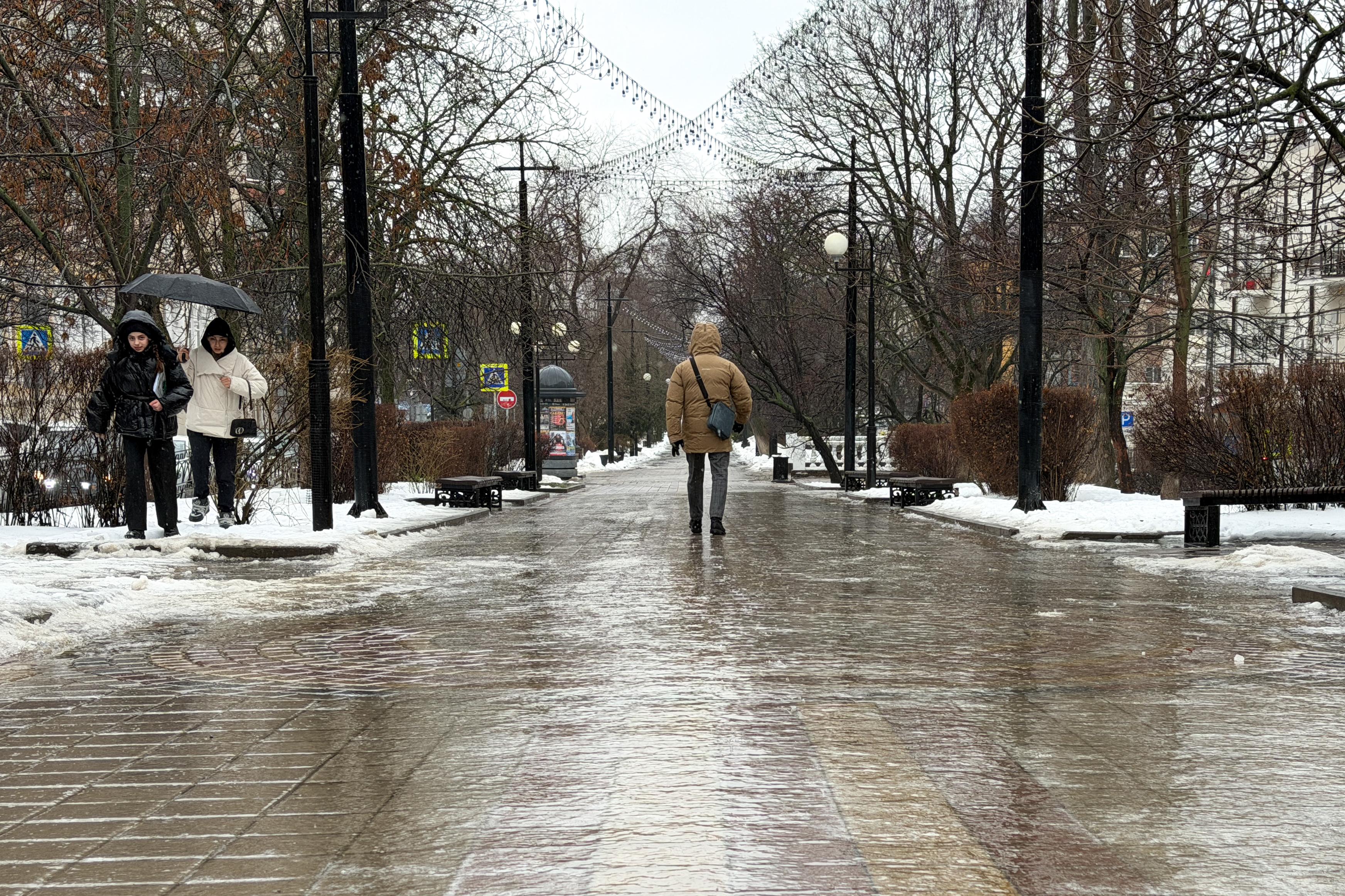 Резкое потепление, наступившее в Ростове 12-13 числа, вызвало образование гололеда. В дневные часы температура превышает ноль градусов, что заставляет снег, скопившийся на улицах с начала февраля, быстро таять. Периодически к этому добавляется моросящий дождь.