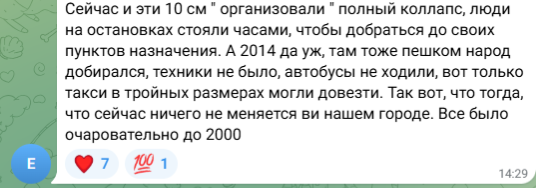 Часть жителей отметила, что снега в этом году было незначительно: «Эти жалкие 10 сантиметров за всю зиму — „много“? 2014-й — много, и конец 80-х — снег был. Если в Ростове выпадет много снега, город встанет в коллапс».