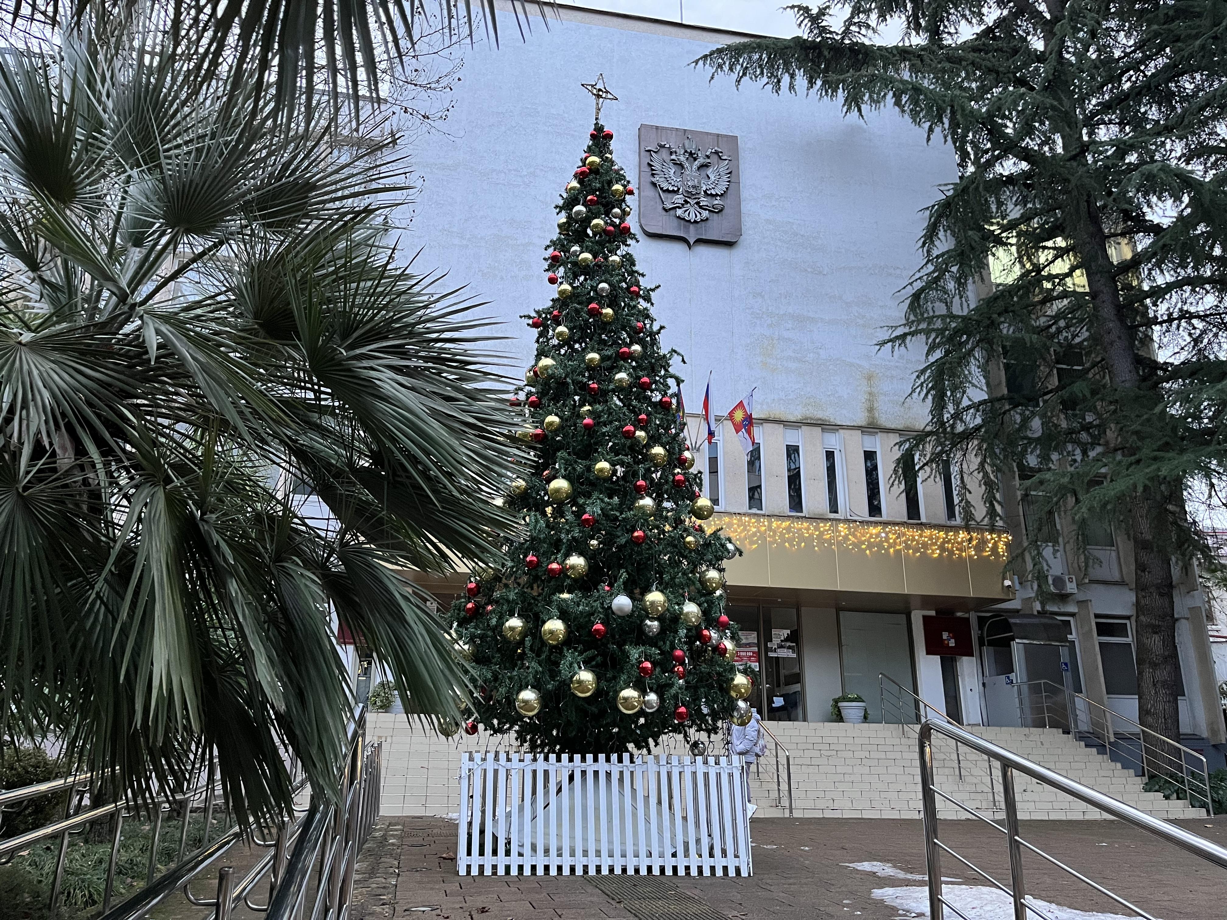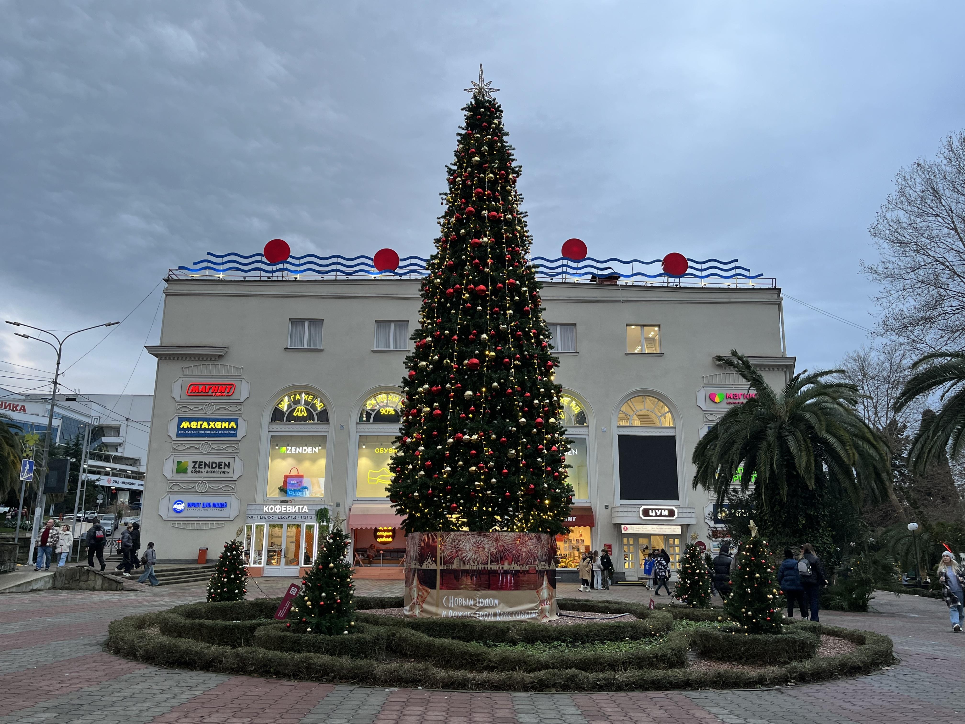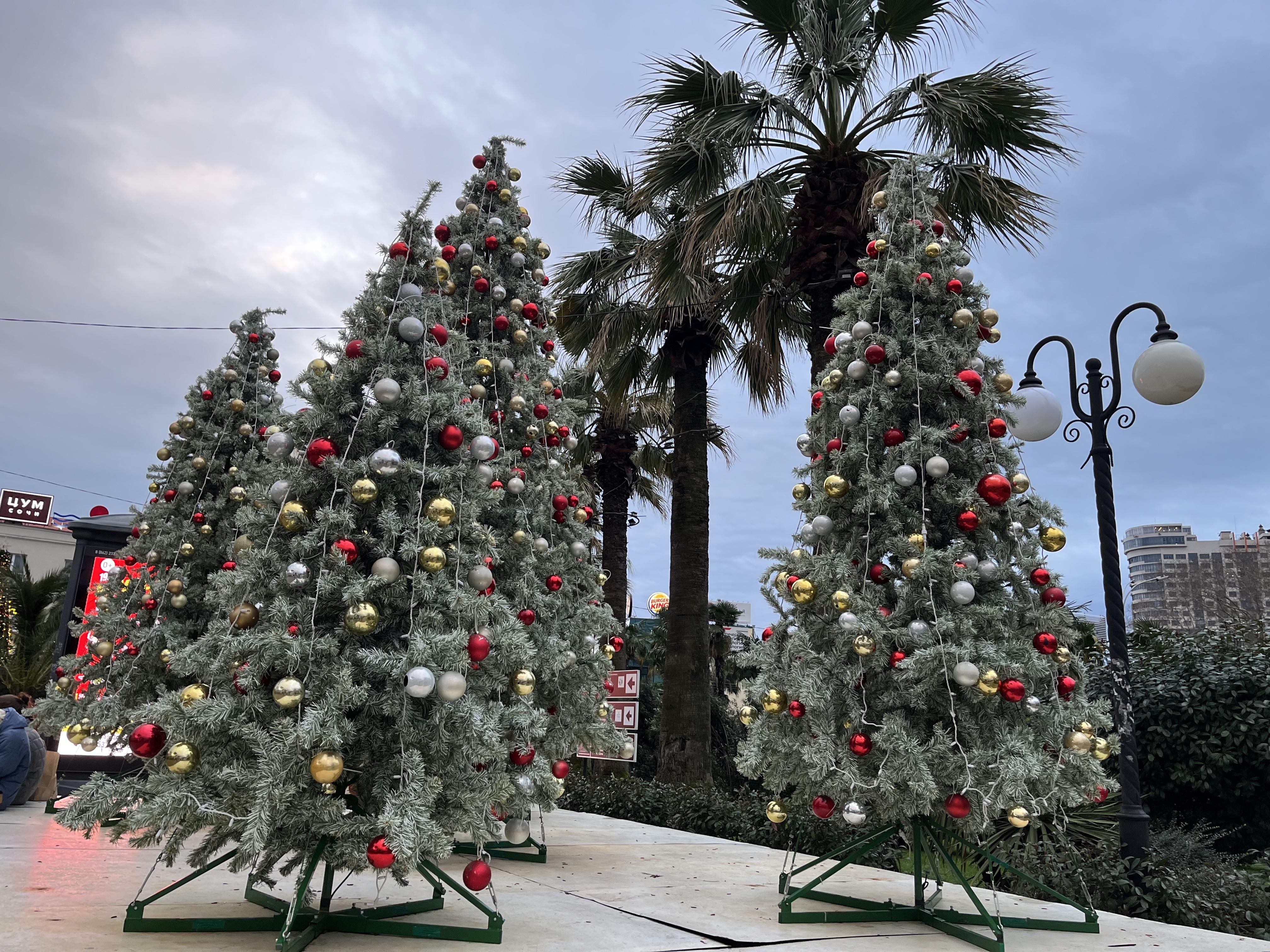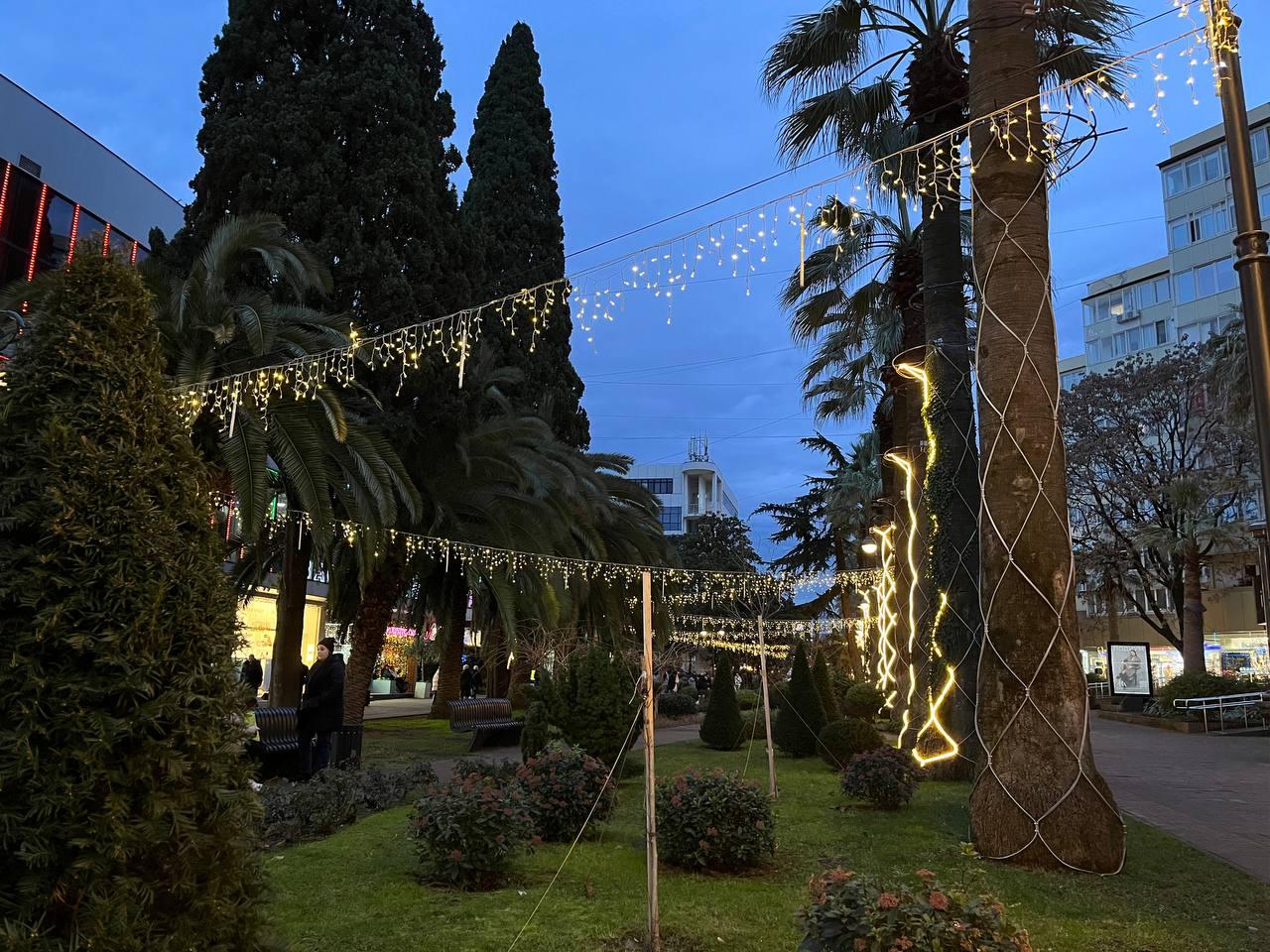В центре Сочи установлено множество гирлянд и новогодних елей.