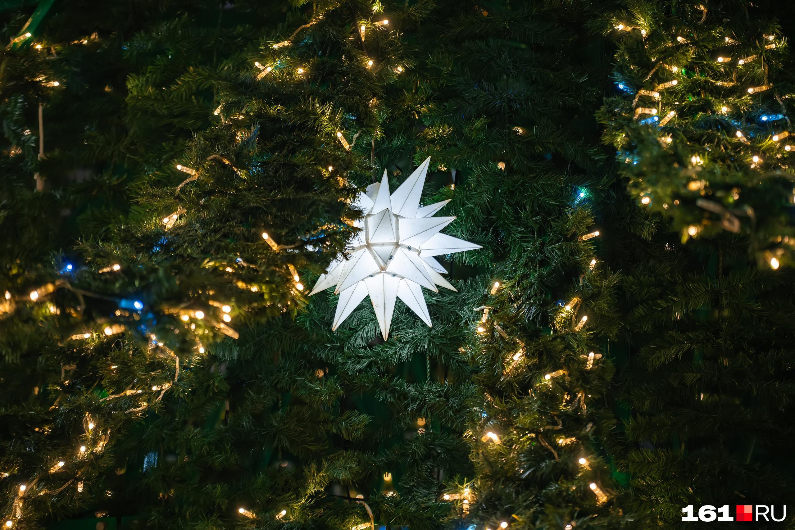 В Ростове главную ель, как и в прошлые годы, разместили у входа в Парк Горького. Её высота составляет 21 метр. Дерево украшено многочисленными гирляндами и светящимися снежинками, а на вершине установлена звезда.